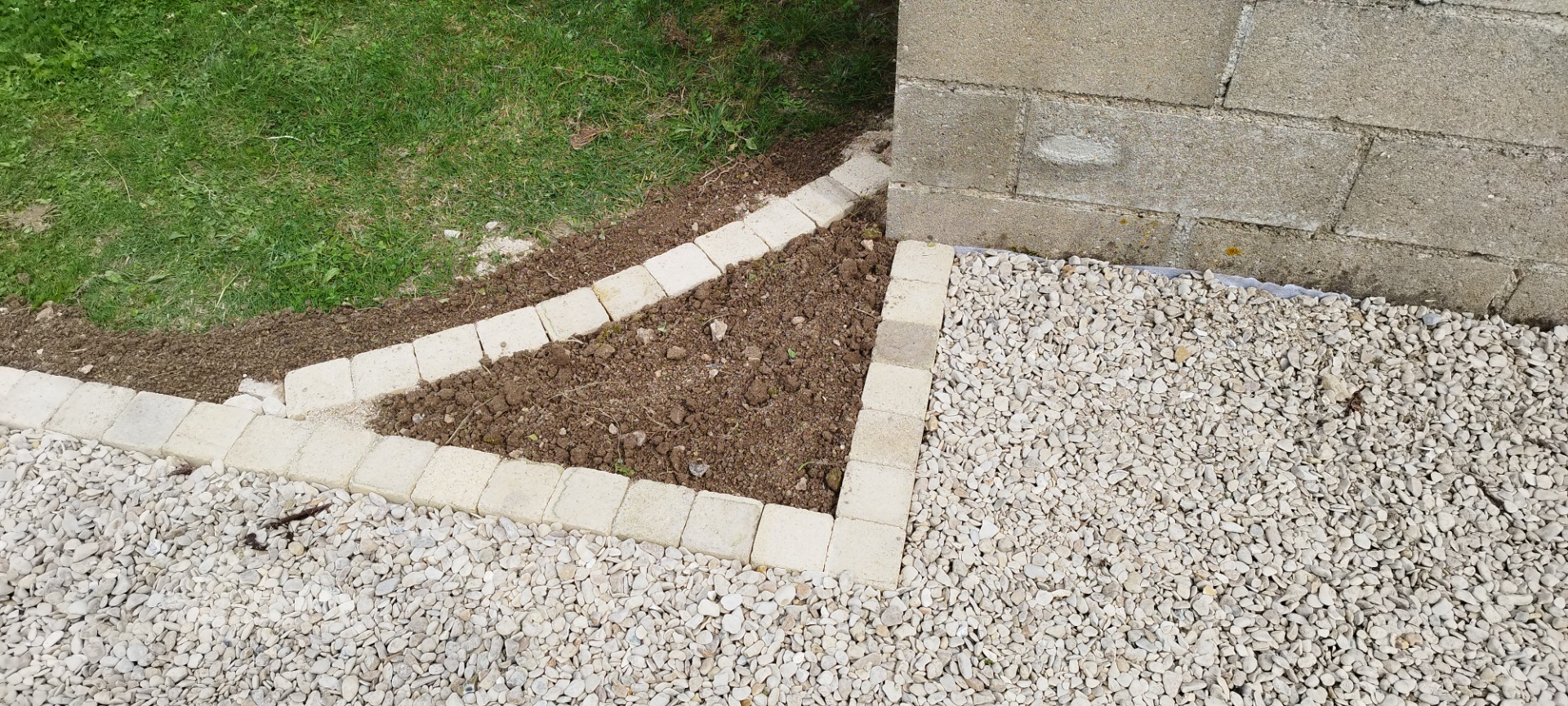 Massif d'angle, bordure en pavés